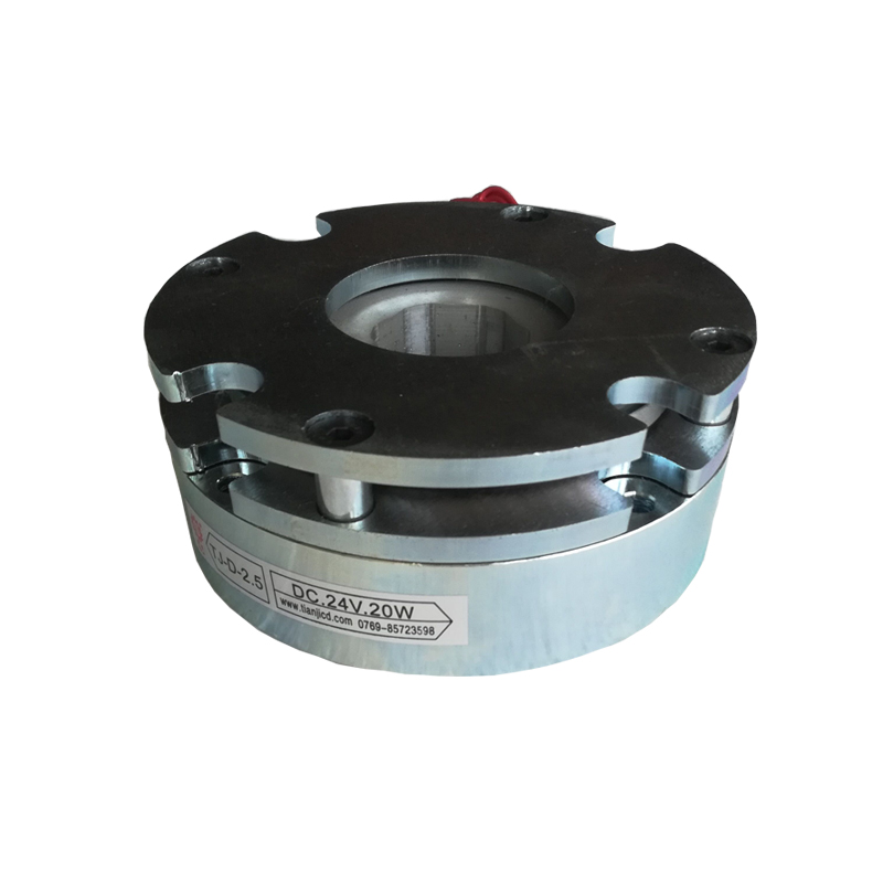 失電制動(dòng)器主要由磁軛、勵(lì)磁線圈、彈簧、制動(dòng)盤、銜鐵等部分組成。當(dāng)制動(dòng)器的勵(lì)磁線圈接通額定電壓時(shí),電磁力吸合銜鐵,使銜鐵與制動(dòng)盤脫離,這時(shí)傳動(dòng)軸帶著制動(dòng)盤正常運(yùn)轉(zhuǎn)或啟動(dòng)。當(dāng)傳動(dòng)系統(tǒng)分離或斷電時(shí),制動(dòng)器也同時(shí)斷電,此時(shí)彈簧施壓于銜鐵,迫使制動(dòng)盤與銜鐵及法蘭盤之間產(chǎn)生摩擦力矩,使傳動(dòng)軸快速停轉(zhuǎn)?。
